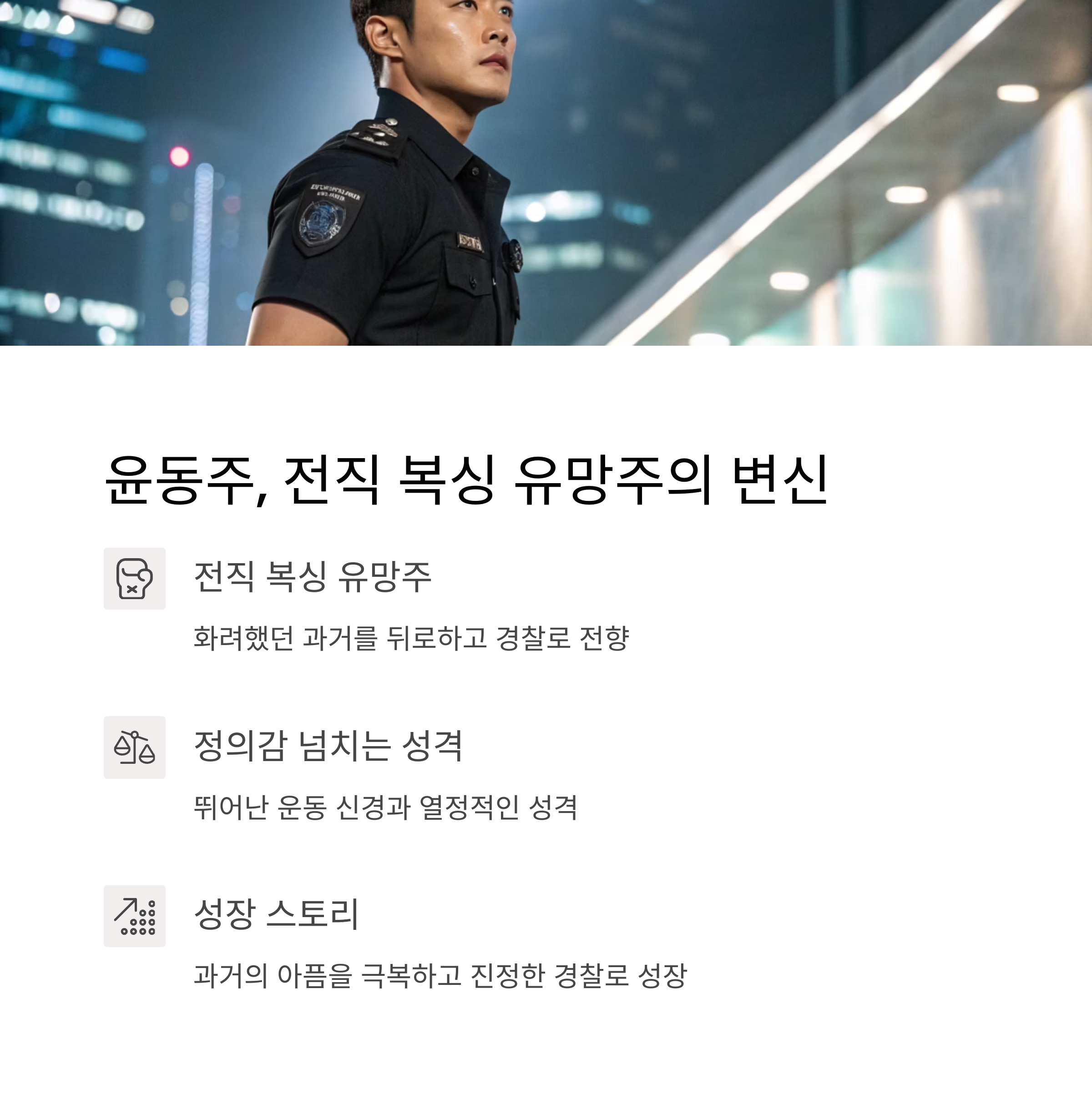 윤동주가 과거의 아픔을 극복하고 진정한 경찰로 성장하는 과정이 이 드라마의 핵심 관전 포인트 중 하나가 될 것입니다.