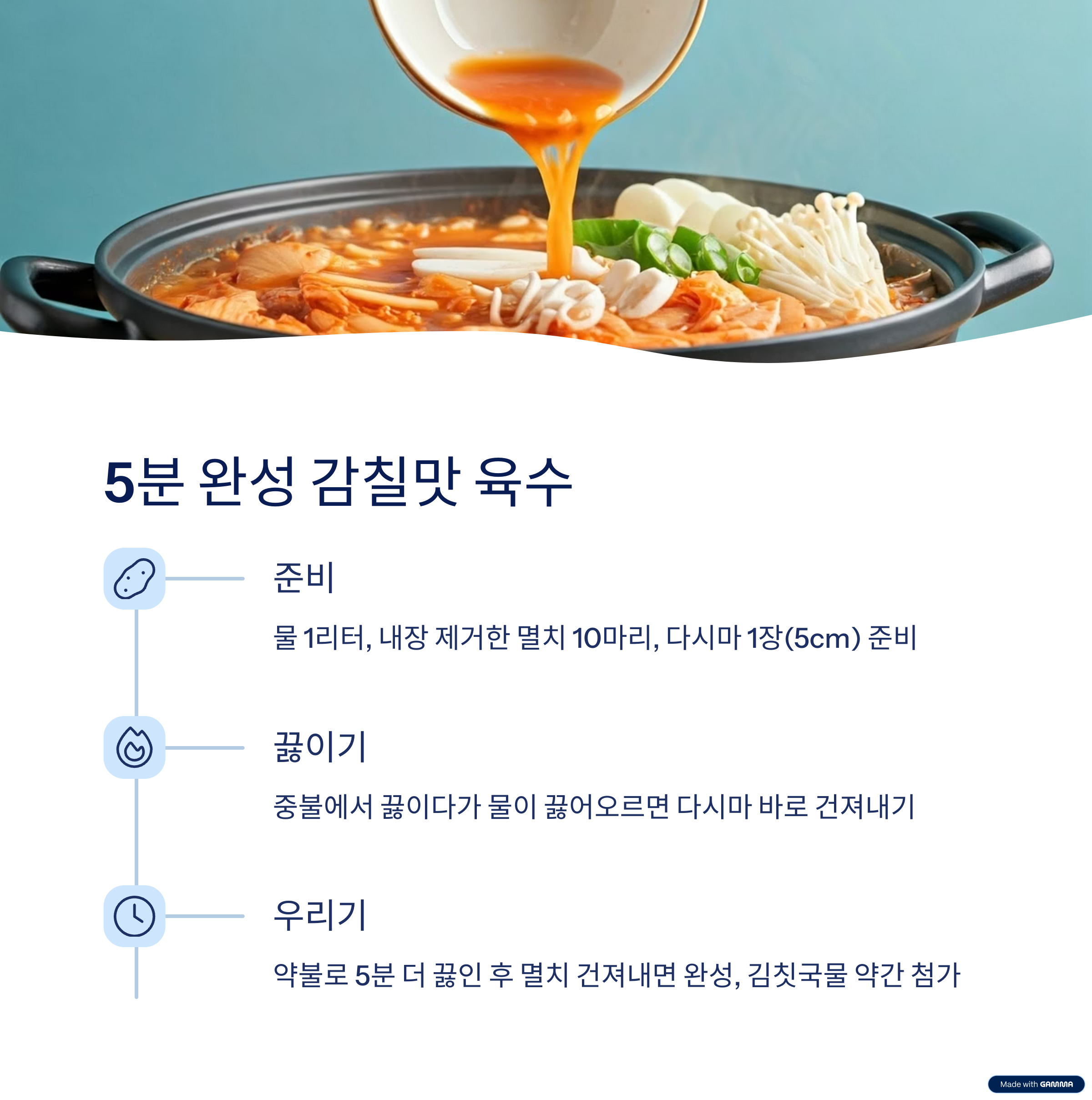 초간단 감칠맛 육수 타임라인: 5분 완성 레시피