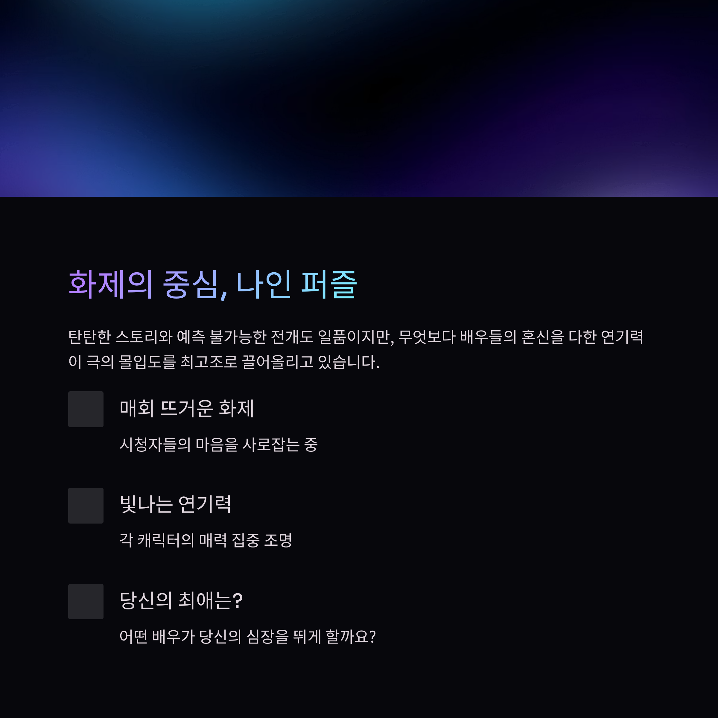 이처럼 전문가들의 호평은 "나인 퍼즐"이 단순한 재미를 넘어 연기적으로도 높은 성취를 이루었음을 증명합니다.
