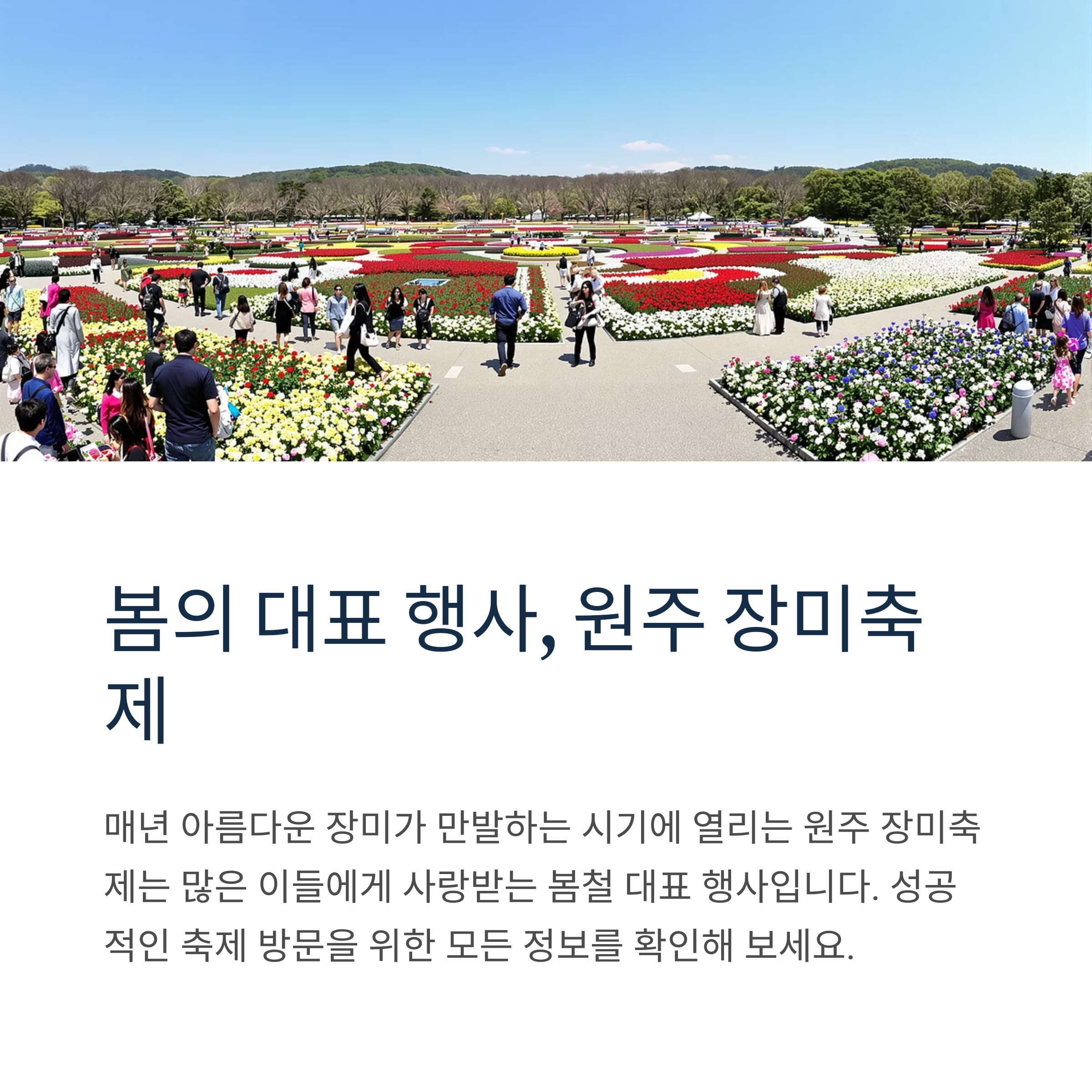 매년 아름다운 장미가 만발하는 시기에 맞춰 열리는 원주 장미축제는 많은 이들에게 사랑받는 봄철 대표 행사입니다.