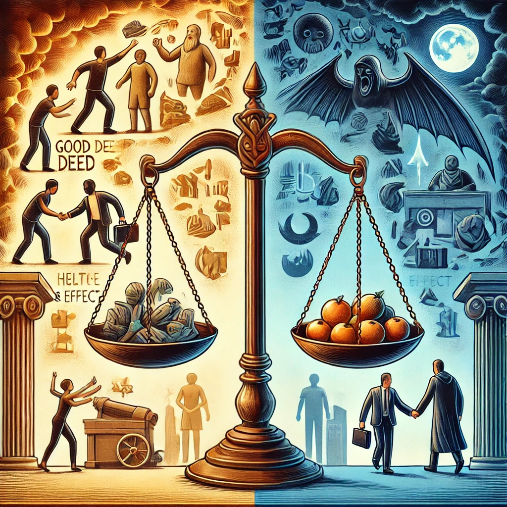 - 행동의 중요성 인과응보는 우리가 매 순간 선택하고 행동하는 것에 대한 중요성을 일깨워줍니다. 좋은 일을 하면 좋은 결과가 돌아오고, 나쁜 일을 하면 그에 상응하는 벌을 받는다는 믿음은 올바른 삶을 살도록 우리를 격려합니다.